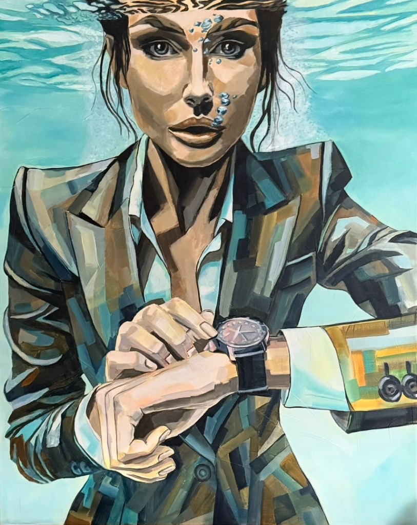 Dans Underwater, ces mêmes carcans se transforment en pression symbolisée par l’eau. L’immersion totale, a priori invivable, devient le cadre d’une résistance sereine : l’homme assis en méditation au fond de l’océan, la femme qui demeure élégante en apnée, traduisent cette capacité à rester debout même dans l’improbable. L’eau n’est pas seulement contrainte : elle devient métaphore de transformation, d’épreuve initiatique où se révèle la résilience humaine.