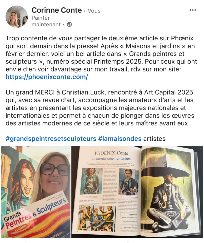 PHŒNIX Conte dans la revue Grand peintres et sculpteurs de Mars 2025.
