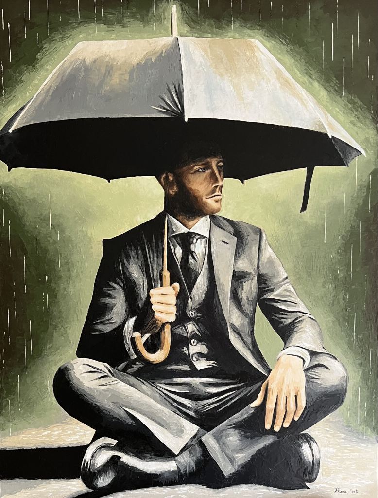 Je suis heureuse et honorée que le Salon d’Automne 2025 ait sélectionné « Time to Cover » une huile de 116x89cm très politiquement symbolique de la série « Corporate » et d’une esthétique mêlant classique et moderne avec malice.